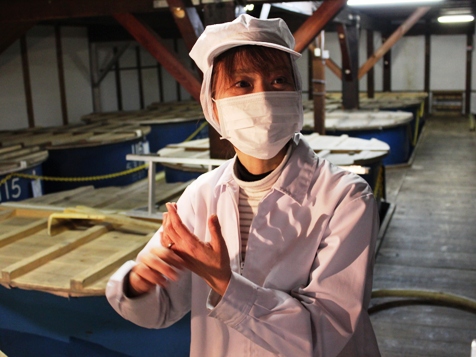 さらに、その上に絵柄になる素材(先ほど準備した花びら、かんぴょう、菜っ葉)