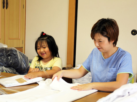 放課後にスタッフのお手伝いをしてくれている、刺し子さんのお子さんの姿も。