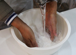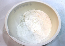 まずは中力粉に食塩水を加え、全体にまぶしていきます。