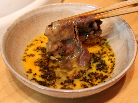 取材後、家で早速「極上七味」を、すき焼きの溶き卵に振っていただくと、