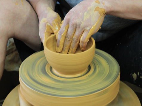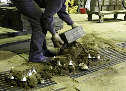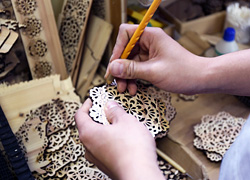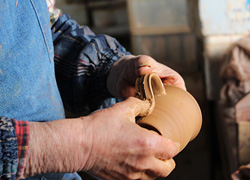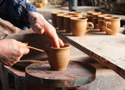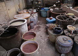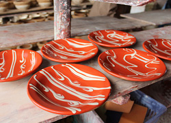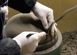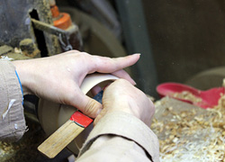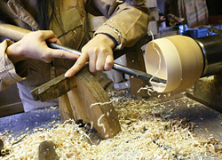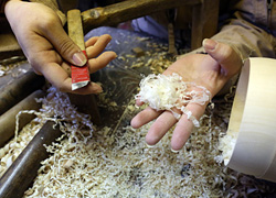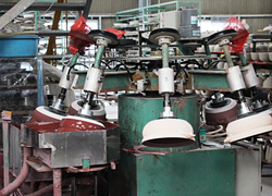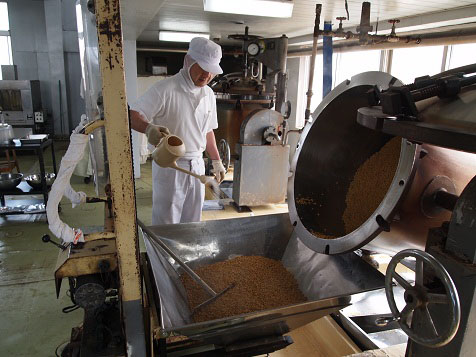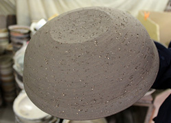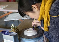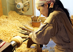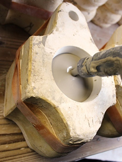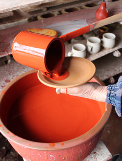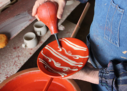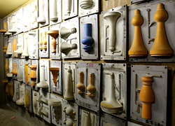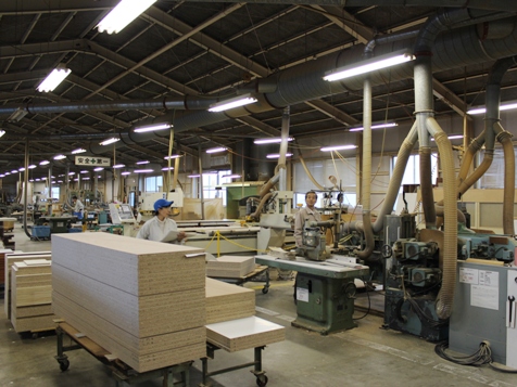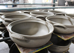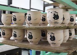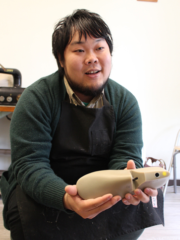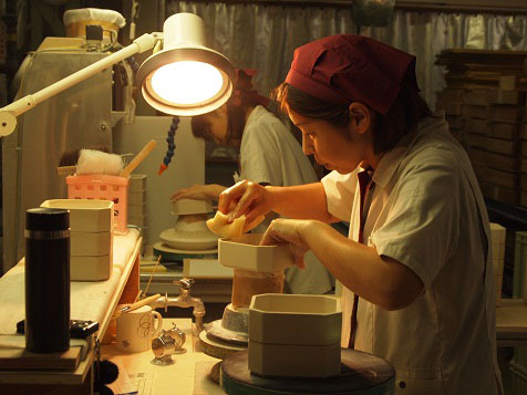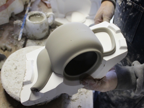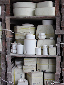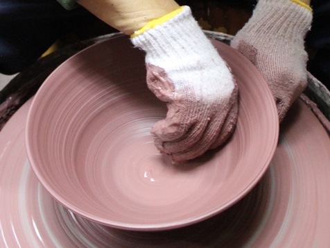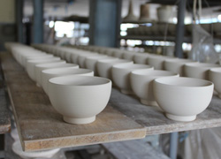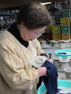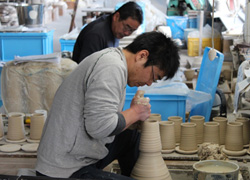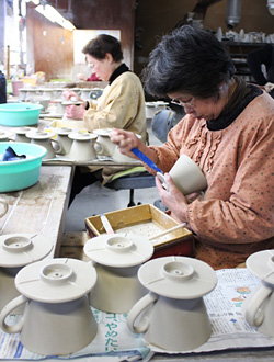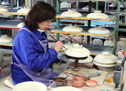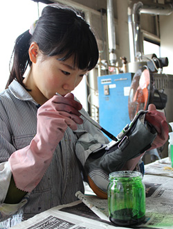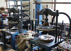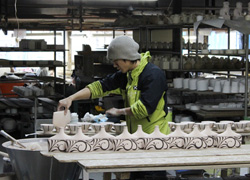 この工場は、自動成形(機械生産)部門とクラフト(手作り)部門を併設している、