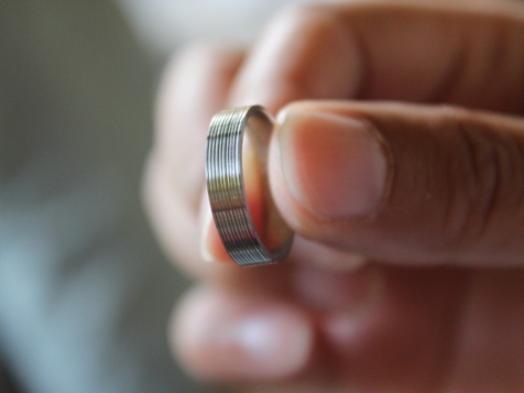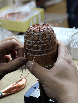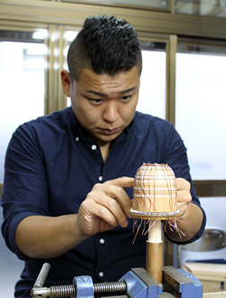直径わずか1.4mmの銅線を、熱処理を加えコイルにします。