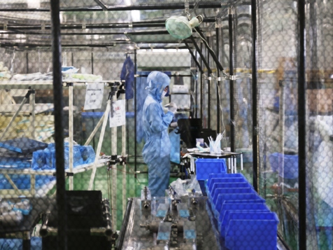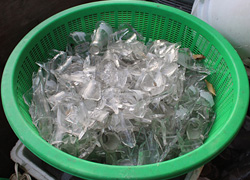 ガラスの形状、不純物の混入などを検査機で見分け、
