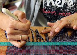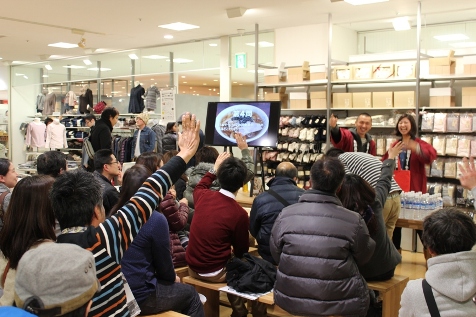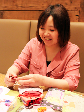 女性たちは自身が手掛けた刺し子の商品を持ち込みます。