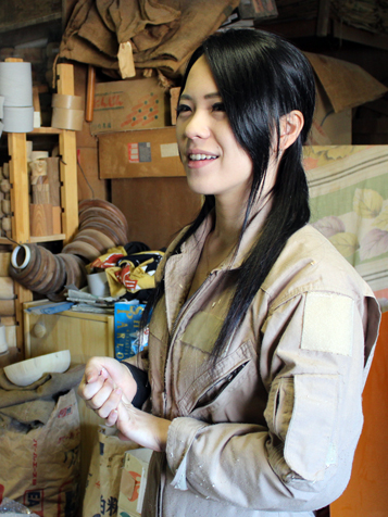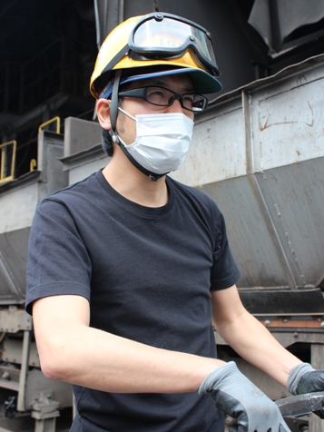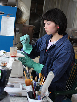 千葉県八千代市にある無印良品のグラス・ガラス食器の生産現場の山本さん。