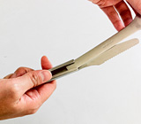 ナイフの柄が丸くなっていて、フラットなフォークとスプーンの柄がすっぽり収まるようになっています。これはほんとにコンパクトで軽い、それでいてしっかりした手応えも感じられる、つまり使い心地がいいのです。