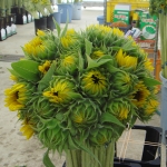 お店に並ぶひまわりは、葉は上の方しか付いていませんが、