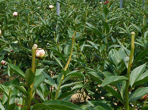 中野市のシャクヤクは、露地で育てているもの、加温したハウスで育てているもの、