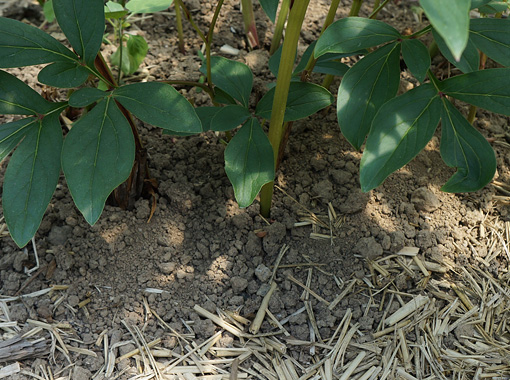 シャクヤクの足元の土を見ると、かなり乾燥しているように見えます。