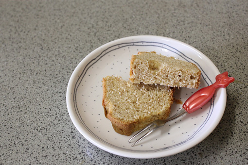 これも普通に作るパウンドケーキの作り方に、粉状のレモンマートルの葉を少し足しただけとのこと。