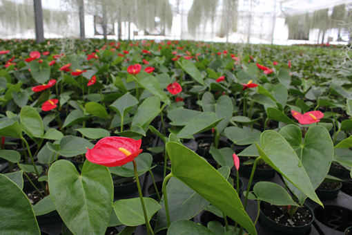 ここでは環境に配慮した設備を多数取り入れており、アンスリウムを育てるハウスでは、