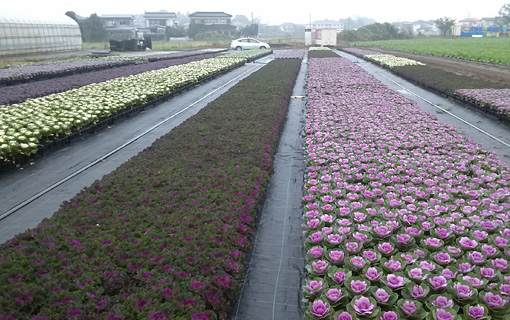 農場につくと、きれいに色づいた紅白の葉牡丹が迎えてくれました。