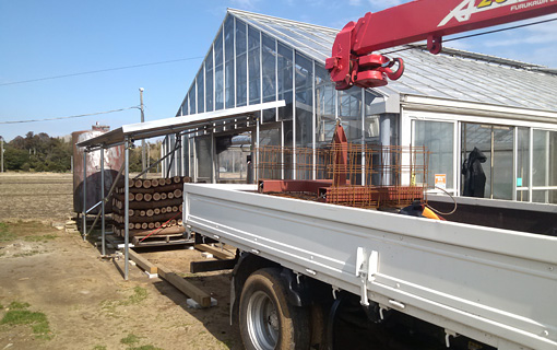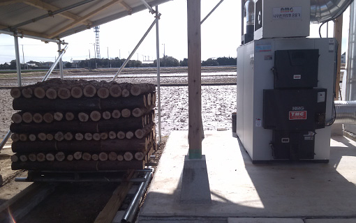 多いのですが、ここでは木材を燃やした熱を利用して、ハウス内を暖めています。