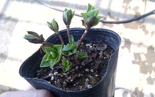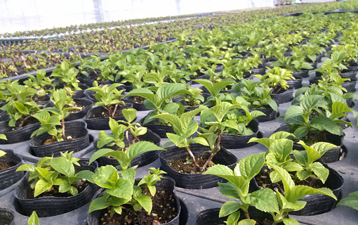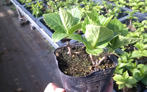 「あじさいの苔玉」になる、あじさいを育てている農場は、