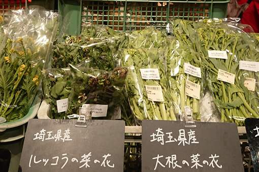 銀座にオープンした無印良品銀座の食品売場にも春野菜が満載。春の光を運んでくれるようなビビッドな色合いが、都会の人々の心を癒しているようでした。