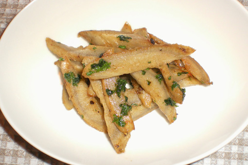 やわらかい新ゴボウは、スパイス炒めやフリッターに