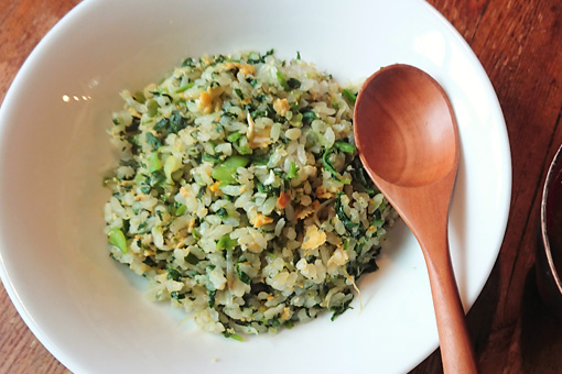 たっぷりのホウレン草を一度に食べられる翡翠(ひすい)炒飯