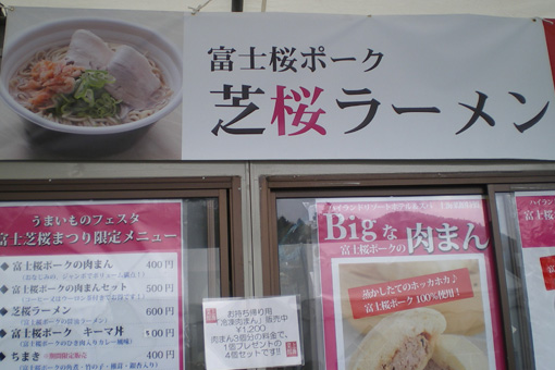 桜にちなんだ料理やお菓子を味わうのも、春の楽しみのひとつです。桜といえばまずは桜餅を思い浮かべますが、地元の芝桜まつりの会場には、さまざまな桜がありました。塩漬けした桜葉を刻んで餡に練り込んだ「桜葉餅」、桜の花びらの塩漬けを入れて焼き上げた「桜シフォンケーキ」、桜の花びらを散りばめた「桜くず餅」のほか、地元特産の豚肉「富士桜ポーク」入りの肉まんやラーメン、ちまき、キーマ丼などなど。日本人の桜好きを実感する光景です。