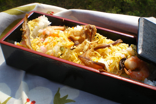 桜に会いに行く日は、お弁当も春らしい散らし寿司に