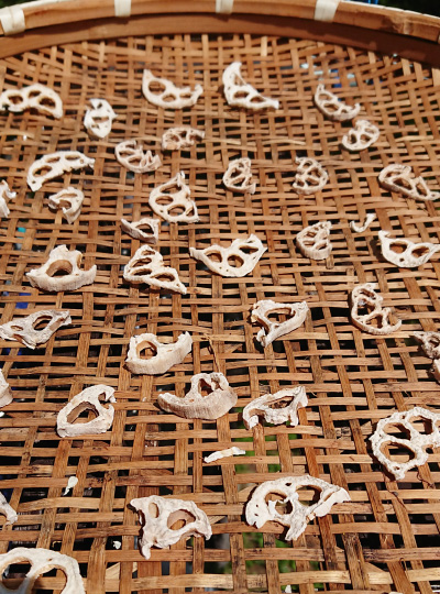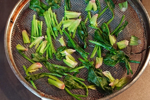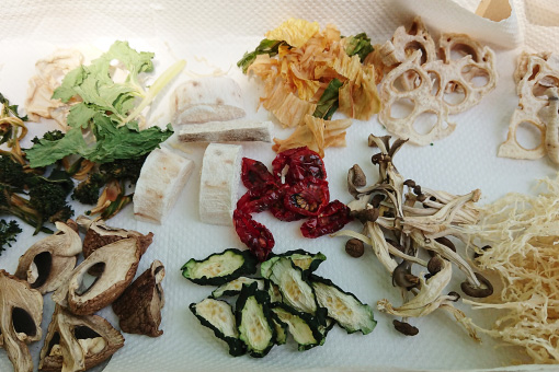 アクのあるゴボウやレンコンなどは塩水か酢水に浸けてから干すこと、青菜やブロッコリーはさっと茹でてから干すことも教わりました。たしかに、こうすれば、普段は捨ててしまいがちなホウレンソウの根っこの部分やブロッコリーの茎、キャベツの芯なども、余すところなく食べられます。