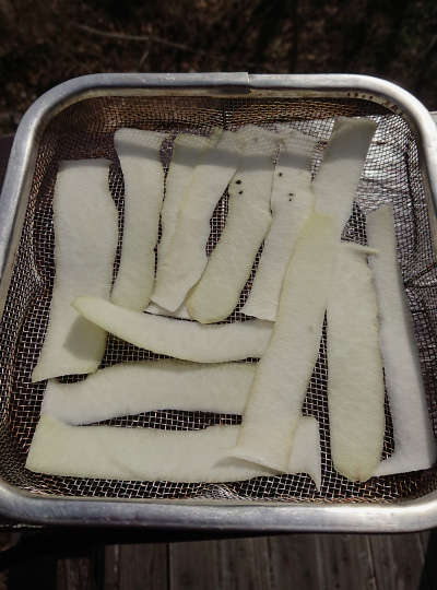 富士山麓に移り住んでから野菜干しが増えたのは、もしかしたら、森の澄んだ空気や空の広さが影響しているかもしれません。青空の下で洗濯物を干すような爽快感と言えばいいでしょうか。青空が大きければ大きいほど、その爽快感も大きくなるような気がします。