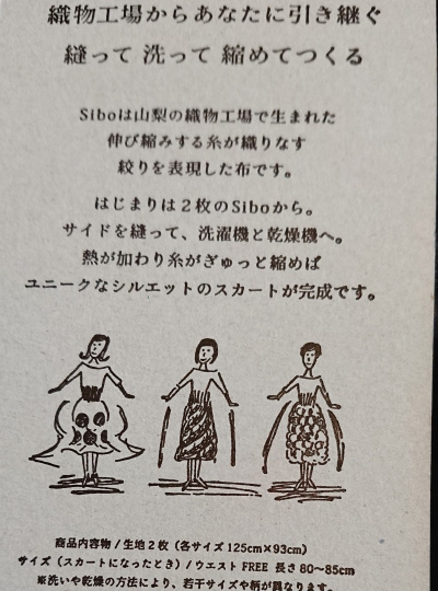 シボのついた素敵な生地に目を奪われ、思い切ってスカートを1枚オーダーしました。富士吉田の機屋さんで織り上げた傘生地を使っているそうです。