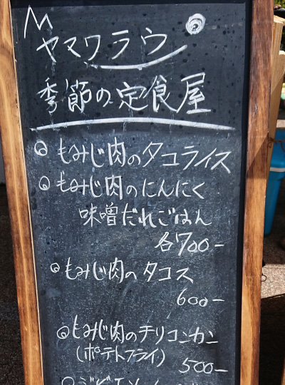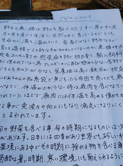 ハタオリマチの夏祭りらしく、フードの出店者も食べモノにこだわりを持つ人たちです。ジビエレストランでは、猪肉や鹿肉のソーセージなどを目の前で焼いてくれるだけでなく、旬の食材を食べることの意味や、「身ごもったら布団を売ってでも鹿肉を食べなさい」といったおばあちゃんの知恵も紹介。