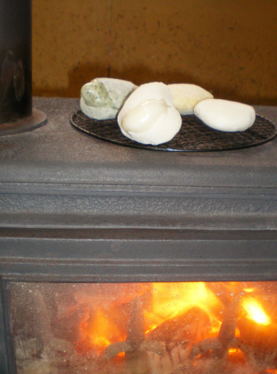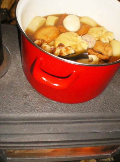 心を暖めてくれるのが暖炉なら、身体を暖めてくれるのは薪ストーブです。その上、お湯を沸かしたり、おでんやシチューを煮込んだり、サツマイモやお餅を焼いたりと、さまざまなシーンで役立ってくれる働き者。わが家の薪ストーブは野外料理専用のものではなく、ましてや外国製の高級なクッキングストーブでもありませんが、冬の暮らしには欠かせない必需品です。