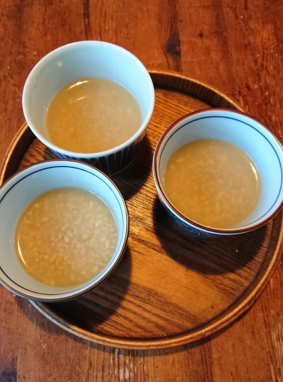毎日欠かさず飲んでいるのは、手作りの甘酒。以前取材で訪ねたことのある福井県の味噌蔵から米麹を取り寄せ、電気釜の保温コースで作っているそれは、わが家全員の健康をサポートする「飲む点滴」です。今は寝たきりになってしまった老犬も、これだけは喜んで飲んでくれます。