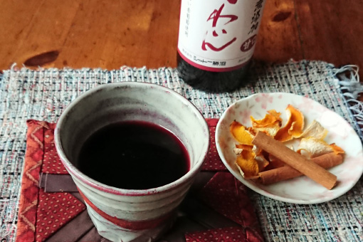 この時季になると、ワインもホットでいただきます。そのとき手元にある材料で作りますが、今回のものは赤ワインにシナモン、グローブなどのスパイスと蜂蜜、そして薪ストーブの上で干したカボスを入れて弱火で温めたもの。カボスは、農家の友人から大量にいただいたもので、方々にお裾分けしても余ったのでドライフルーツにしました。単に身体があたたまるだけでなく、気持ちまでほぐれていくのは、お酒の効用でしょうか。外で焚き火をするときはもちろん、暖炉の炎を眺めながらぼ~っとしていたいときなど、絶好のお供になります。