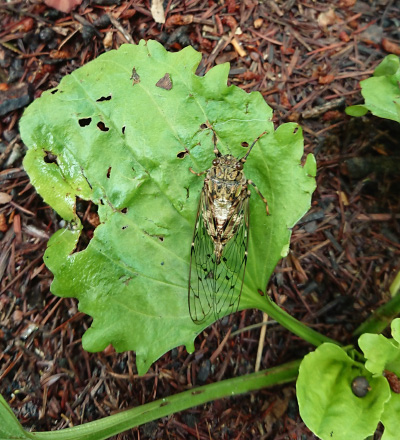 殻を脱いだばかりのセミ。羽根はまだ透明です。