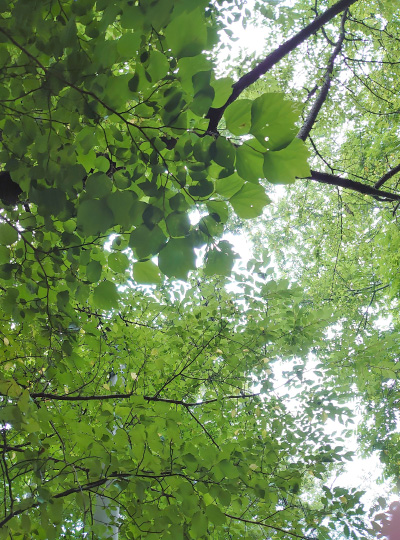 声を頼りに見上げても、野鳥の姿は見つけられないことの方が多いのですが、代わりに見つけるのは、ひっそりと咲く樹の花やその周辺でゴソゴソ動いている虫たち。樹の下から見上げたときの葉っぱの裏側の表情も面白くて、つい見とれてしまいます。