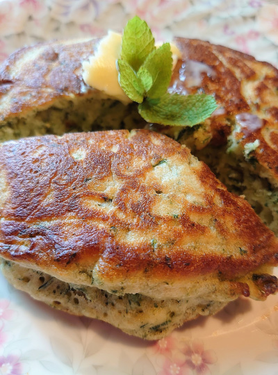 男性陣の労をねぎらって、ある日のおやつは、よもぎのパンケーキに。よもぎは東洋医学で生薬として使われるほどで、どこでもぐんぐん繁る生命力には圧倒されます。食べるには五月のお節句の頃がもっともやわらかいのですが、ゆがいたものをすりつぶしてパンケーキの生地に加え、焼いてみました。草餅ほどではありませんが、よもぎの香りがして、パンケーキなのに和の雰囲気がするから不思議です。