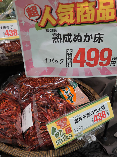 この時期になると、地元のスーパーでは漬物用の炒りぬかやあらしお、昆布、唐辛子などが山積みされます。「学問のすすめ」ならぬ「漬物のすすめ」といった風情。その引力に逆らえず、せっせと漬物づくりに励むことになります。