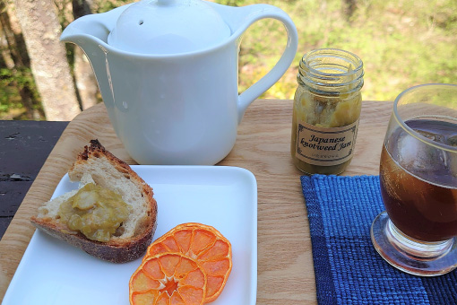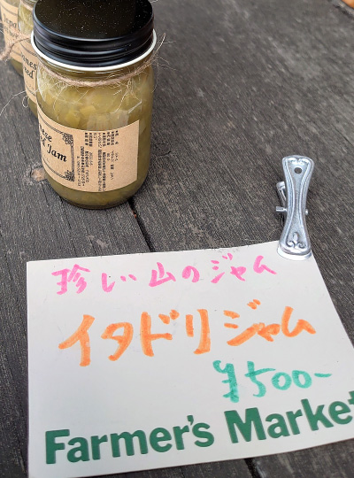 そしてこちらは、イタドリのジャム。イタドリは、わが家でも若い芽を天ぷらにしてよく食べますが、ジャムになるとは驚き。茎の部分の薄皮をむいて作るといいますから、これまた想像しただけで気が遠くなりそうな根気のいる作業です。