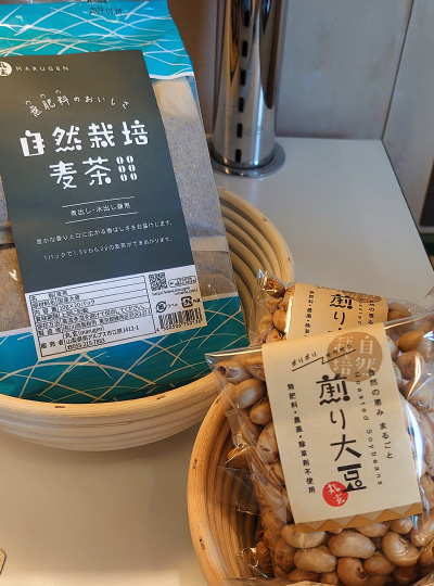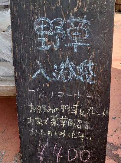 まず目に留まったのは、野草のお茶たちです。私も家でヨモギとドクダミくらいはお茶にしたことがありますが、ここにあるのはヨモギやドクダミだけでなく、シソ、スギナ、ナズナ、カキドオシ、カラスノエンドウなどなど。手書きのボードには、野草の名前と生えているときの写真、味の特徴や民間薬としての使われ方などが懇切丁寧に説明されています。パッケージの裏には、栄養的なことや野草茶の淹れ方も。それらを読むだけで野草講座を受けているような気になります。