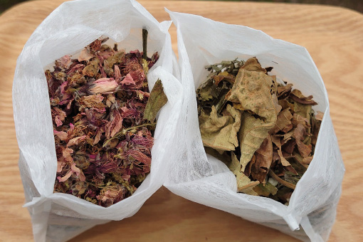 気になるものをあれこれ詰めて、2袋ばかり買い求めました。袋詰めする時も「素手で触って、それぞれの植物の感触や香りを楽しんでください」と鶴岡さん。たしかに、お日さまをたっぷり浴びて干された野草には、人の心をやわらげる力があるようです。