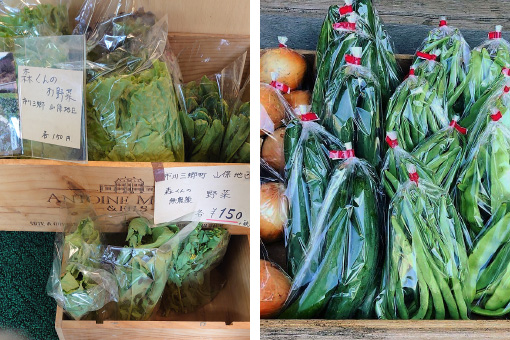 山梨県に移住してきた青年が山間部で丁寧に育てている「森くんの野菜」。惣菜パンのトッピングや具に使われているだけでなく、芦沢さんは店の一角に野菜コーナーを設けて応援しています。