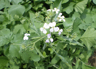 大根の花は、同じアブラナ科の菜の花に似ています。