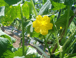 左がキュウリで、右がカボチャ。どちらもウリ科です。