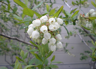 野菜畑の傍にあるブルーベリーの花。ゴールデンウイークの頃に咲きました。