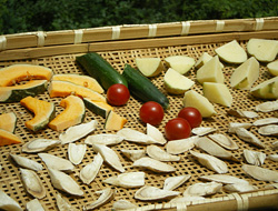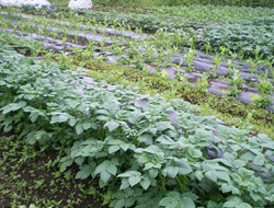 裏庭に猫の額ほどの小さな畑を作り、里に下りて貸農園も借りました。標高約1300mの我が家は里より気温が低く、野菜によっては育たないものもあるからです。