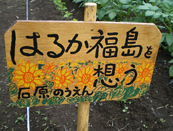 右:隣の区画を借りているのは、福島浪江町から避難されてきたご夫婦。看板の文字が切ない。