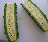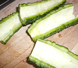 緑のシェードを熱心に育てている友人から、その副産物であるゴーヤの実をお裾分けしてもらいました。ゴーヤは大好きな野菜ですが、日本では沖縄から広まったように、もともと暑い土地の野菜。標高約1300mの我が家の畑では、さすがに育たないので、スーパーで買っています。