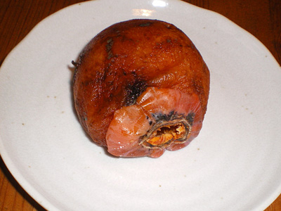 とはいえ、めげている暇はありません。当面の急務は、落下した干し柿をどうするか・・・1個百円以上もする渋柿を、ていねいに剥いて吊るしたものです。落ちたからといって、捨てるのはあまりに忍びない。汚れを取って、口に入れてみました。ラッキーなことに渋は抜けていて、とろりとした濃厚な味わいです。