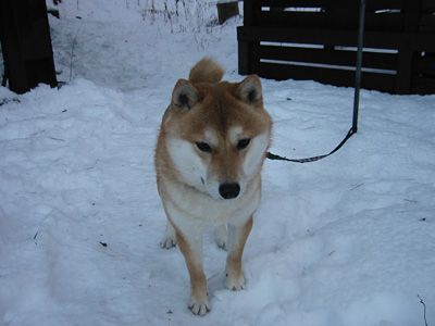 こちらは、雪へっちゃらの柴犬。得意技は、鼻で雪かき。