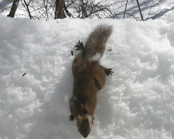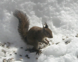 草木が雪に埋もれてしまう冬場、動物たちは何を食べて生きているのでしょう。豪雪だった何年か前、食べ物を求めて里に下りてきた鹿が国道で車に撥ねられるという事故が相次ぎました。厳しい季節の中でも、動物たちはけなげに生きています。