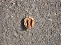 こちらは、冬が来る前の食べ物、胡桃。実を上手にくり抜いて食べた跡です。