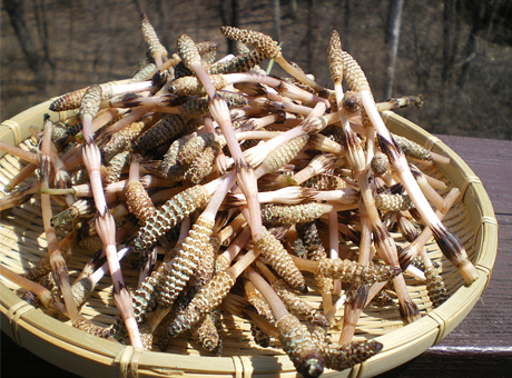 古名の「つくづくし」は、いかにも雅な感じ。源氏物語には、宇治山の阿闍梨が傷心の中の君のもとへ「蕨、つくづくし、をかしきを籠に入れて」贈ったとあり、春の旬の食材として貴族たちにも貴ばれていたようです。