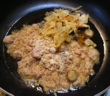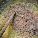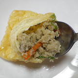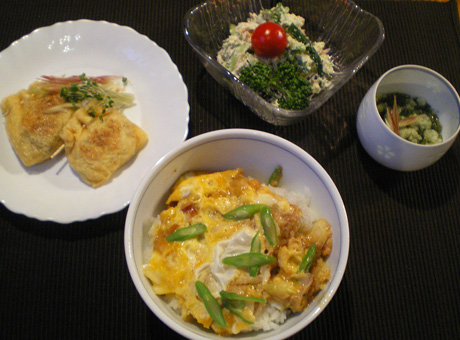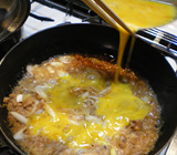 そして、こちらは「おから丼」。親子丼の鶏肉の代わりに、おからと天かすを使います。京都の老舗料亭・菊乃井の賄い料理で、テレビでも紹介されたレシピ。菊乃井では、このお豆腐屋さんのおからを使って作るそうです。